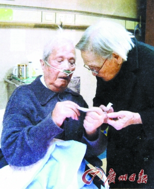 最近几年,前列腺癌手术、支气管哮喘、肺气肿、梗塞性肺气肿折磨着陈恩,莫芸每天细心照顾着他。“他最喜欢喝红茶奶,就是红茶加上牛奶,但喝不了。我就泡好让他鼻子闻一下。” “我照顾他是义不容辞的”,八十多岁的老人莫芸说着,眼睛中不禁充满了泪花。(据广州日报)