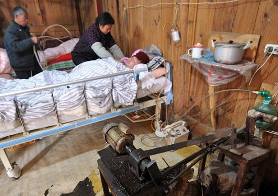在出车祸后的两年时间里,老付夫妇一直陪着儿子住在台州市中心医院的重症监护室里,每天只有下午的三点钟到四点钟这一小时可以进去探望儿子。看着重症监护室里的儿子,王兰芹几乎每天以泪洗面。可是,儿子的情况一点也没有好转,就这么住在医院也不是个办法,老两口一心想着儿子能够痊愈,在台州市中心医院住了两年后,他们带着付学朋开始辗转于上海的一些大型医院求医。