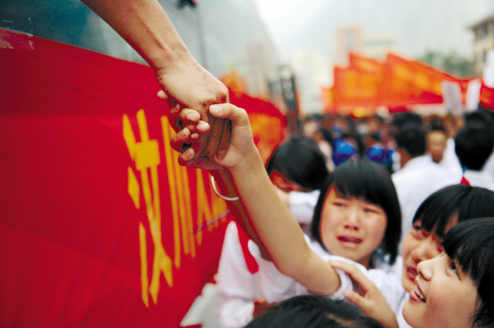 穿上节日的盛装,举起欢送的标牌,拿上自家最好的红樱桃、土鸡蛋、一针一线纳出的鞋底……欢送的群众除了在县城的,还有从很远的山上赶来的,广东援建干部早已是他们眼中的英雄、心里的亲人———“我们的恩人、我们的亲人要离开了,我们舍不得,我们已经把你们当成了我们汶川人!”有位群众在欢送的队伍里喊了一声:“广东的亲人,这里永远是你们的家,有空多回家看看!”顿时,这句朴实而真情的话在欢送队伍中,像阵阵风、排排浪,反复回荡。
