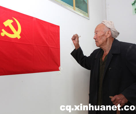 当红艳艳的党旗铺展在自家院墙上时,黄先春眼角湿润了,他的目光聚焦在金色的党徽上,久久未曾离开。