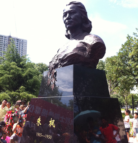 骨灰安放仪式结束后,镇海区在“枫园”举行了朱枫烈士铜像揭幕仪式,并在朱枫故居举行国家安全教育基地命名及揭牌仪式。
