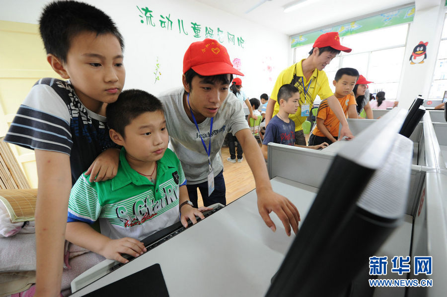 每到寒暑假,快乐家园儿童俱乐部都会迎来大批流动儿童。这些从农村来到城市与父母团聚的孩子们在俱乐部里可以看图书、做游戏、参加兴趣小组,还可以在大学生志愿者的指导下学习课外知识,像城里孩子一样度过丰富多彩的假期。新华社 李健 摄