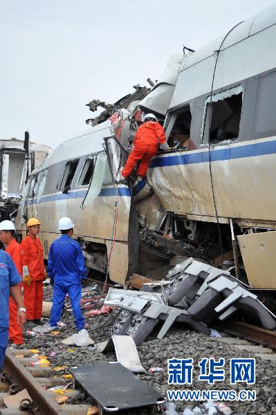 除坠落在地的车厢外,严重受损的其他车厢位于20多米的高铁轨道上,无法在第一时间得到救援。现场指挥部命令,组织一支技术过硬的消防救援人员经过轨道旁边的山体上去,打开一条生命通道。于是,“敢死队员”沿着湿滑的山路背着20多公斤重的救援设备赶赴现场。新开辟的路极为湿滑,官兵们只能互相用头顶脚一个一个推上去,一个不小心就有可能从陡壁上滑下。