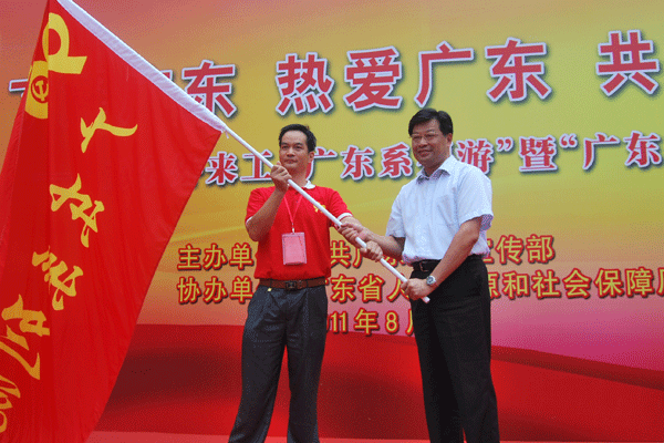 8月8日上午,广州起义烈士陵园纪念碑前,近500名身着红色T恤衫的外来务工人员,集体高唱国歌,缅怀革命英烈,参观广东革命历史博物馆。这是由广东省委宣传部组织的“了解广东 热爱广东 共建共享幸福广东———万名外来工广东系列游”活动的启动仪式现场。省委常委、宣传部长林雄出席仪式并宣布活动启动,林雄还向外来工代表赠送革命书籍,并为活动授旗。