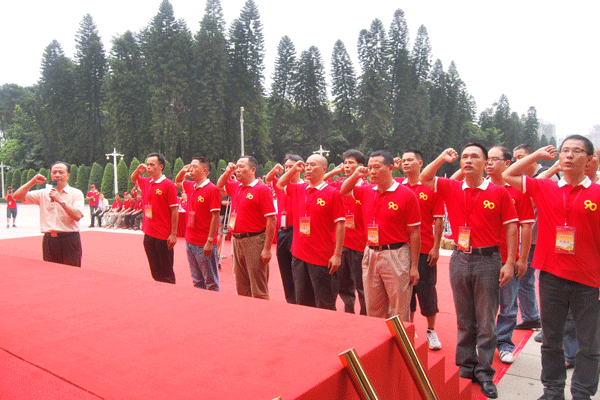 农民工党员代表在广州起义烈士陵园纪念碑前举行宣誓活动