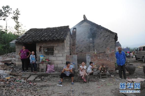 24日傍晚,张庄村村民赵建国端着一碗水煮方便面,蹲在一片烂砖碎瓦的废墟上,慢条斯理地“吸溜”着。太阳悄悄地躲到了山的后面,暮色四合。