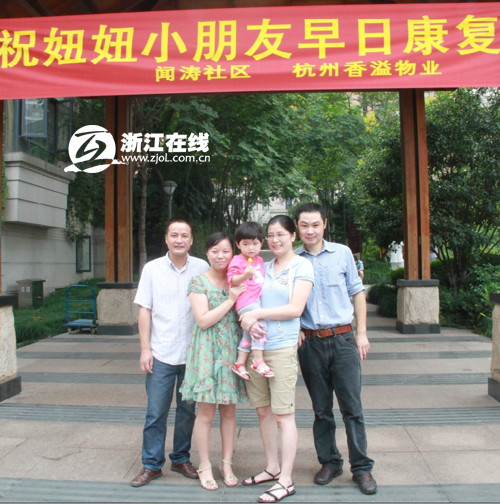 吴菊萍一家和妞妞一家在小区楼下合影