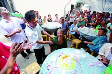 “歪歪,你满百岁的时候,一定记得再请我们喝酒哈!”众邻居也高兴得笑起来。当天赴约的邻居有100多人,有人送来鞭炮,有人送来蛋糕。
