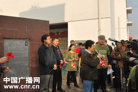 著名知青侯隽代表知青们在开馆仪式上致辞,从全国各地赶来的知青们在知青馆门前的“云南知青墓碑“前献上了鲜花,代表着和平、友爱的白鸽徐徐飞起,放飞着知青们的梦想。随后,他们走进知青生活馆,来自重庆的老知青激动的指着墙上的照片说“这个在红旗下站着的就是我,看到没有,没想到在这里找到当年的自己”,原来,他们是在17岁时到云南插队,23岁才回到重庆,这张照片是他们当时的集体合影。