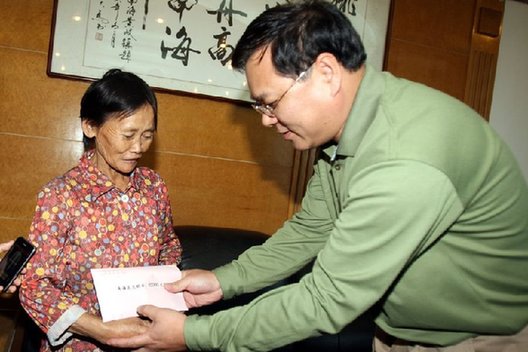 长跪在地的曲女士含泪接下了这个沉甸甸的信封。(大恩网综合)
