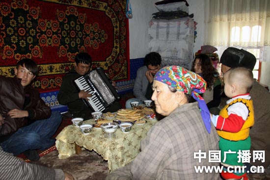 伊犁察县锡伯民族歌舞团抗震自救慰问演出小分队的身影就活跃在察县部分受灾群众家里。库拉提家中现有四口人,没有口粮地,仅靠一家小小的卖菜摊维持生活,而如今老人病情严重,使原本就缺乏劳动力的家庭经济上变得更加拮据。小分队成员来到他们家慰问演出,为老人全家演唱了多首歌曲,用歌声传递温暖,鼓励老人坚强面对暂时的困难,日子一定会越过越好。