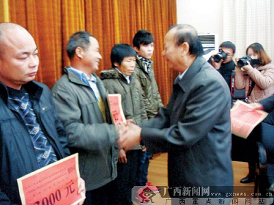广西慰问见义勇为者及家属 发慰问金共46万元
