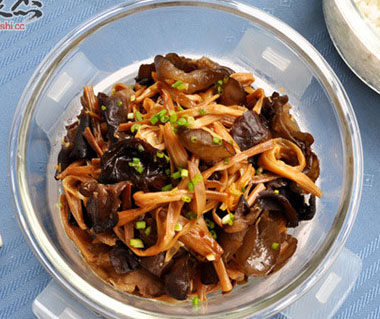 应对阴霾天气,“清肺除尘”黑木耳炒黄花菜。民以食为天,以食防“毒”吧。黑木耳,素有“血管清道夫”之称。补血益气之余,更有润肺除尘的强大功效。黑木耳有较强的吸附作用,能显著增强肺泡细胞排出有毒细颗粒物的能力,能有效的协助人体排出体内积聚的PM2.5颗粒物及其他有害物质;黑木耳对胆结石、肾结石也有较好的化解功能。黄花菜含有卵磷酯等丰富的脑及神经系统需要的营养物质,有强力健脑和抗衰老作用,并具有“安五脏、利心志、明目”的功效。将黑木耳与黄花菜搭配,两种佳材强强联合,清肺除尘,益智健脑,食补的同时还可大享清脆爽口,嫩滑鲜香的美味,一菜两得。