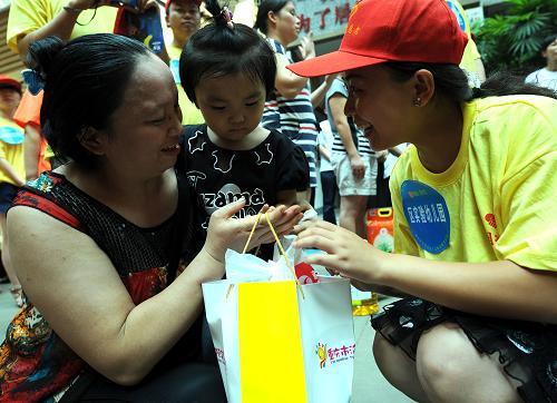 8月9日,主题为“同一片蓝天、同一份关爱”的重庆渝中区关爱农民工志愿者服务活动启动仪式在大井巷社区举行,现场数十名志愿者为农民工们提供了各类咨询服务活动,同时还向数十名参加活动的农民工送上大米、食用油等物品。“每个社区都是一个充满爱的细胞,每一位生活在其中的农民工朋友都能得到服务、得到关爱。”渝中区文明办主任朱军称。