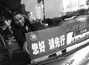 宁波公交司机王忠良挂出礼让自律牌 --"您好 请先行" 2011年04月25日