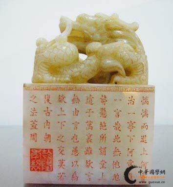 汉字是世界上最古老的文字之一,从西安半坡陶器片上的刻画符号算起,已达六七千年的历史;如从商代都城遗址殷墟出土的甲骨文来说,也有3000多年的时间。中国的雕刻文字,最古的有殷商的甲骨文,当时已有人能用刀在甲骨上熟练地契刻成篇的文辞。甲骨文以刀代笔,刻画爽利,线条洁净,字形生动,书法峻峭挺拔。到了商代中晚期以后,随着社会对冶炼铸造青铜器技术的熟练掌握和运用,人们又开始用“翻砂”和“拨蜡”法在青铜器皿上铸印出文字。这种铸造在青铜器上的铭文,后代称之为“金文”。在商代就有了类似于后来印章的一种“印模”,这是当时铸造青铜器时在上面铸印图案和徽记所用的“模子”。凡在金铜玉石等素材上雕刻的文字称之为“金石”,玺印即包括在“金石”里。