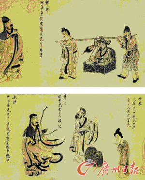 比陶渊明稍后的年代有本叫《续齐谐记》的书,记载东晋人许彦挑着鹅笼赶路,碰到一个书生要求搭便车,偌大一个人钻进鹅笼,居然不觉得挤。坐下来休息时,书生从嘴巴里吐出一桌宴席,又吐出一个女朋友,书生睡着,女朋友又吐出自己的奸夫,女的睡着,奸夫又吐出自己的二奶,到最后,又一层一层地吞回去。