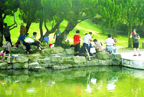 赏景纳凉——唐诗人姚合喜在高楼上纳凉。他有五绝云:“避暑高楼上,平湖望不穷。鸟穿山色去,人歇树阴中。”陆游喜在河畔桥边纳凉。他在《桥南纳凉》中写道:“携杖来追柳处凉,画桥南畔倚胡床。月明船笛参差起,风定池莲自在香。”