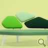 几个看似不规则的模块用叶脉形的支架拼起,竟成了一片“绿色”沙发,不仅可以坐卧,更是前看赏心,后观悦目。