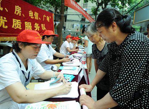 “不管是在社区为身边的农民工朋友义诊,还是到劳务市场宣传健康知识,都能让我在奉献中得到满足。”52岁的渝中区妇幼保健所职工王宏左胸别着一枚“健康志愿者”的勋章,他从事志愿活动已经有10年。王宏以前服务的对象主要是渝中区本地的群众,现在更多时候是为农民工服务。他说自己很乐意也很主动地想和农民工交朋友,希望为他们提供服务,让他们感受到市民的关爱,在城市找到归宿感。